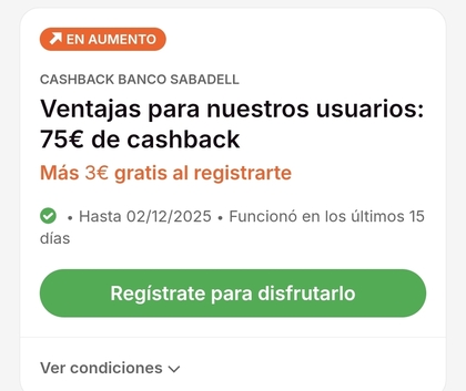 Re: Promoción Cuenta Online Sabadell. 300 €, 2,5% TAE y 3% en recibos. ¡FIN DE PROMOCIÓN! Hasta el 31/01/25