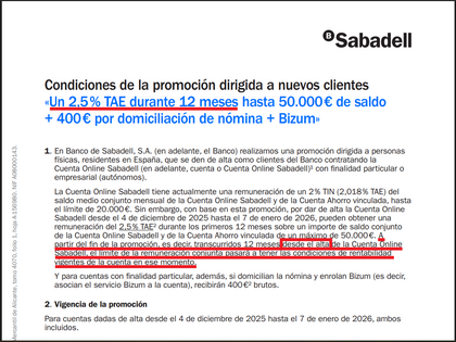 A menos que, o bien, en el área de cliente, para la cuenta en cuestión, aparezca el detalle del tipo de interés actual de la cuenta; o bien, el cliente haya recibido ya una comunicación del Banco, avisando de que, a partir de tal fecha, la remuneración pasará a ser la normal, no bonificada.