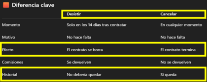 Gracias por tu respuesta. Tienes razón, di a responder en mi propio mensaje. Yo cuando solicité el desistimiento por teléfono. En el texto que te leen para hacer la solicitud de desistimiento, la gestora del SAC empezó diciendo… “Solicita cancelación…” y dije que era desistimiento… así que me volvió a leer el texto.. “Solicita desistimiento…”