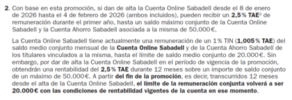 Re: Promoción Cuenta Online Sabadell. 300 €, 2,5% TAE y 3% en recibos. ¡FIN DE PROMOCIÓN! Hasta el 31/01/25