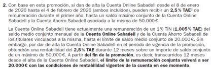 Buenas. Pues a ver si me puedas aclarar . Acabo de abrir la cuenta on line Sabadell  viendo que me interesa el 2,5 % 12 meses y en las condiciones del contrato menciona hasta 20000 el 2% .Supongo que aplicarán el 2,5 % a las cuentas abiertas entre el periodo que menciona , puede ser? O en que he me equivoqué? Gracias