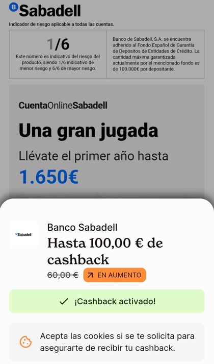 Re: Promoción Cuenta Online Sabadell. 300 €, 2,5% TAE y 3% en recibos. ¡FIN DE PROMOCIÓN! Hasta el 31/01/25