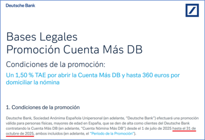 ■ 01/10/24 hasta 30/11/24: 360€ + 2% TAE 1 año (de 10.000 a 100.000€)