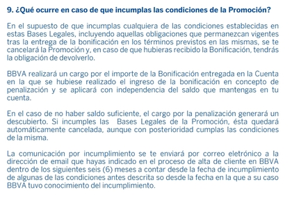 PROMO 5% CASHBACK TC AQUA+ incumplimiento