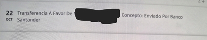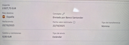 me pone ,pero aún no ha llegado el dinero, pone que el 29/10, pero de Santander ya salió el dinero con concepto de Recibo hace varios días.