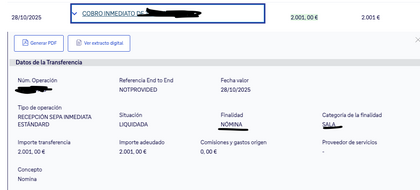 Las n0minas en OP aparecen como "transferencias de nombre y apellidos ". El símbolo de las "monedas", salían porque SAN ponía por defecto en sus transferencias el concepto: n0mina.