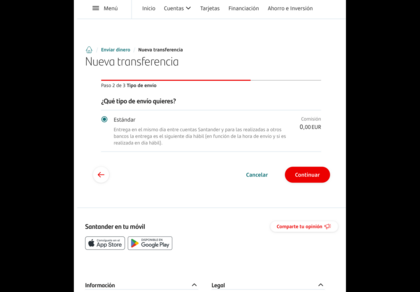Hablamos de s4nt4. La opción "Hoy" corresponde a transferencia puntual.
