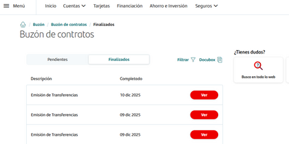 ¿A través del buzón "📧 - Contratos y Docubox - Finalizados" cómo te sale la transferencia? Ayer me di cuenta que ahí (en Contratos) aparecen todas las transferencias emitidas, y además indica el tipo (se ve claramente si es tipo nómina o no, a parte del concepto). Mucho mejor que en la propia correspondencia online.