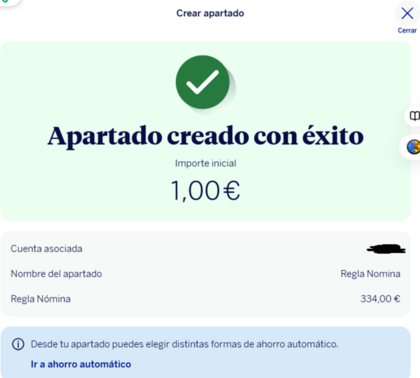 A mí me ha ocurrido una cosa un tanto singular: ayer, aparentemente me dejó contratar de nuevo la promo ahorro 6% sin cerrar cuenta (soy repetidor por segunda vez). He clickado en el enlace que has puesto y me ha dejado seguir todos los pasos para crear la regla de ahorro nómina y crear el apartado. Me dice que he finalizado la contratación con éxito. Así quedó cuando terminé de crearlo: