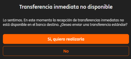 Empezamos bien la mañana, he intentado hacer una transferencia inmediata de INJ a Sibidill y me sale esta pantalla: