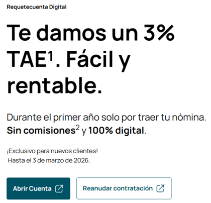 No tiene lo del 3% de la Requetecuenta, es decir no remunera el dinero que tengas en ella.