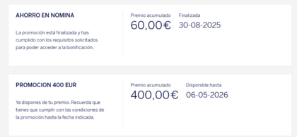 Si has terminado ya la promoción, entonces te saldrá con el literal de "Finalizada", en lugar de "Disponible hasta". He aquí dos ejemplos de una finalizada y otra activa: