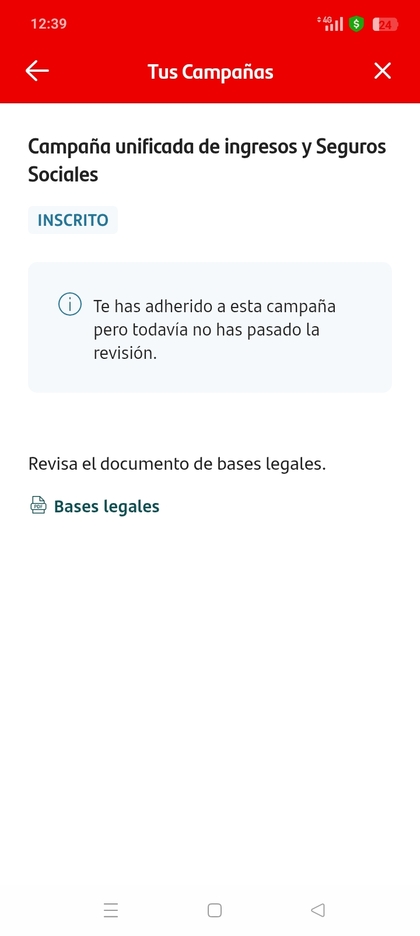 Gracias . Lo he intentado. Quizá sea porque el alta de cuenta on line la efectúe ayer tarde. Desde la App, al pinchar en "contratar" y en icono de "consigue hasta 400", me dirige a lo siguiente y ahí se queda . Peeero!!! en campañas si que sale que estoy adherido y falta pasar revisión. Supongo que esto avanza.