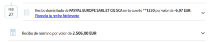 AGENDA FINANCIERA Para ver las transferencias recibidas codificadas como n0mina y también los recibos, aparte de otros movimientos. Tarda algunos días en consolidar los movimientos.