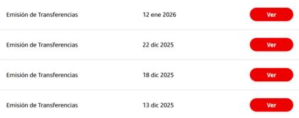 Se puede entrar a cada una de ella, para ver los detalles. En tipo de transferencia: Nómina.
