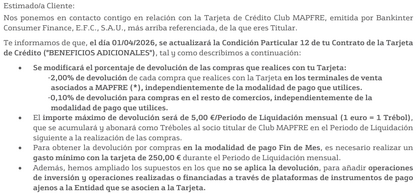 Tarjeta cancelada. En cuanto desde mi área de mapfre detecten que no tengo tarjeta vuelvo a contratarla si prorrogan la promo bienvenida (ahora mismo pone que finalizó el 31/12/2025 y que anunciarán en breve las nuevas condiciones).