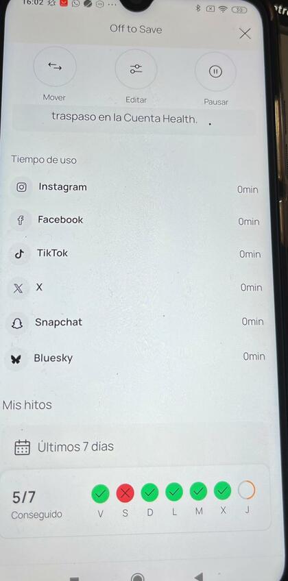 3- Traspasar 60€ de la Save para el reto de redes sociales del día anterior (autotraspaso en MEDIA HORA) y el reto de pasos del día actual (autotraspaso en madrugada siguiente).