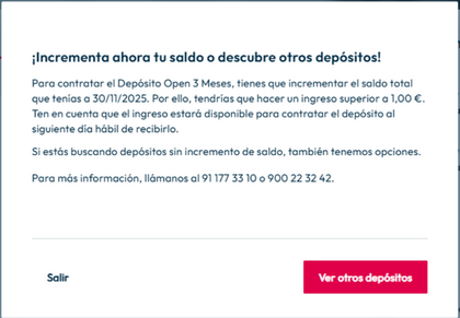 Yo no lo he intentado aún porque tengo uno al 2,78 y tenía pensado hacer este otro antes que acabará el mes que hay tiempo, pues es raro que no te deje apartarlo, los requisitos son esos que tengas mas dinero nuevo desde el 30 de noviembre, así va ser eso, mete slgo mas con una tesnf inmediata e intenta apartarlo,, que el sistema vea q hay dinero nuevo, pruébalo, yo con el que tengo constituido anterior del 2,78 lo hice en el momento, metí el dinero, espere al otro día y lo hice