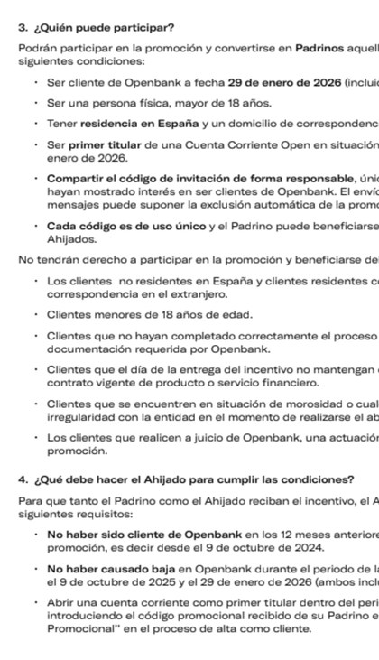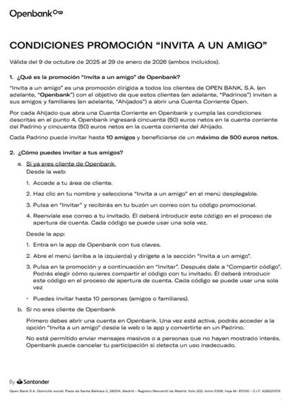 Hola : Según la respuesta que el 07/11/25 me envió Openbank ya desde ese día constaba como ejecutada mi “solicitud de supresión de datos”. He estado mirando desde entonces pero no veo que tengan ninguna promoción por domiciliación de nómina/🍷¿sabéis si hay algo al respecto?. He visto que dan hasta 30€ por activar y un uso mínimo de BIZUM, pero ya puestos no sé si me conviene reabrir cuenta solo por eso, o esperar a que saquen otra vez algo por domiciliar la nómina. ¿Como lo veis……hacen la supresión en condiciones, o hay casos en que aún tras ello te siguen reconociendo como antiguo ya cliente?