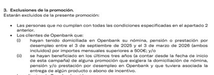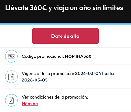 Compañer@s, con respecto a la nueva promoción de Open ( LLÉVATE 360€ Y VIAJA UN AÑO SIN LÍMITES AL TRAER TU NÓMINA (MÍN. 1.200€) Trae tu nómina (mín. 1.200€) y consigue 30€ brutos al mes y Travel+ durante un año), por lo que he podido leer es compatible para lo ya clientes (antigüedad mayor a 12 meses) y SIN nómina desde hace 6 meses (no es muy restrictiva).