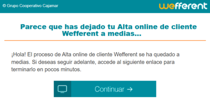 Pues a pesar de que ayer no pude finalizar el proceso de alta online, hoy he vuelto a intentarlo con más luz, ya que la causa que me salía era falta de resolución del teléfono. Te mandan un nuevo mail para volver a hacer la video identificación y confirmar los datos que ya constan del primer intento. Cualquier cosa antes de pasar por la oficina física!!!
