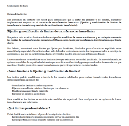 Comunicación recibida desde Bankinter:
