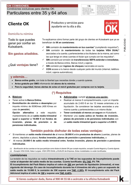 Os pongo información de cómo interpreto yo las promociones y comisiones en Kutxabank: