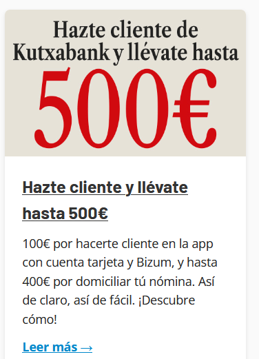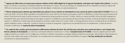 Sonaba mejor solo lo de 1 año con bizum, pero hay que tener en cuenta que la cuenta de cuchabank sin cumplir condiciones tiene bastantes comisiones, y para que no te cobren tienes que tener nómina y un requisito adicional entre varios, donde el más sencillo es hacer 5 compras con la tarjeta al trimestre.