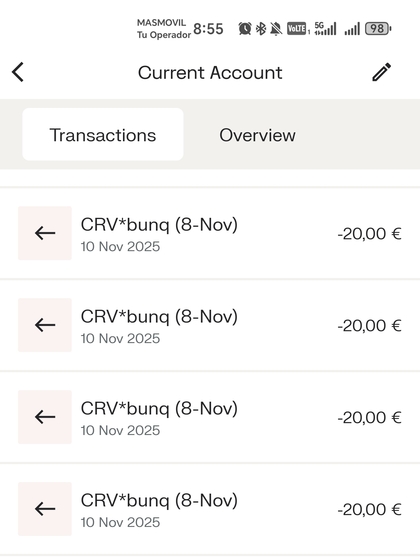 #2041 Re: TARJETAS promociones y cashback Ver mensaje de Canterit Reich D Seguir 18/12/25 08:48 Vale, estoy a medias todavía 😭@m4ndr4gor4 para esto de me direct, no me activan curve ¿Servirá recarga en Bunq con la tarjeta? Entiendo que no al no identificar compra online no? Responder