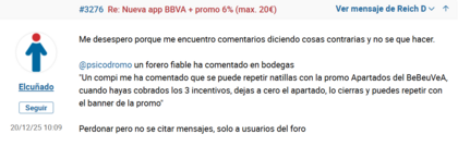 @psicodromo un forero fiable ha comentado en bodegas "Un compi me ha comentado que se puede repetir natillas con la promo Apartados del BeBeuVeA, cuando hayas cobrados los 3 incentivos, dejas a cero el apartado, lo cierras y puedes repetir con el banner de la promo"