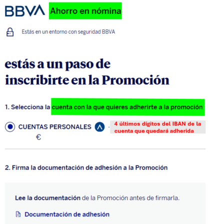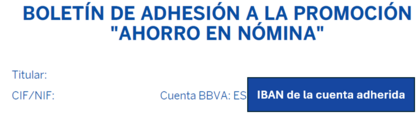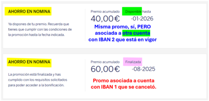 Yo estoy por 2ª vez en la misma promo del 6% (60 € máximo), peeero... cada vez con una cuenta bancaria diferente, puesto que el sistema impide (lógicamente) que con un mismo IBAN puedas repetir 'natillas. En mis promos: Adherirse correctamente a esta promo implica asociarla a un IBAN concreto. Luego, una vez firmada la adhesión a la promo, se genera PDF con el Boletín de Adhesión donde consta el IBAN de la cuenta adherida, junto con nombre y NIF de su titular: