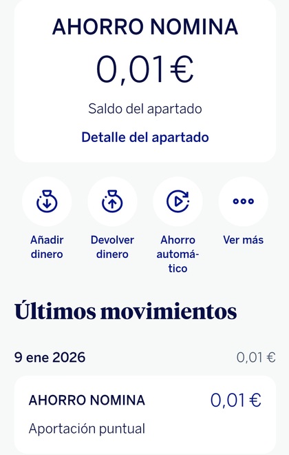 Yo cree el apartado y la regla el miércoles 07/01/26 también active y firme el 6%, he tenido 0€ en mi apartado hasta ahora y hoy sobre las 01:00hrs ha entrado mi domiciliación y a las 20:00hrs ya tenía ejecutada la regla y traspasados al apartado los 334€ que yo seleccione como cuantía.