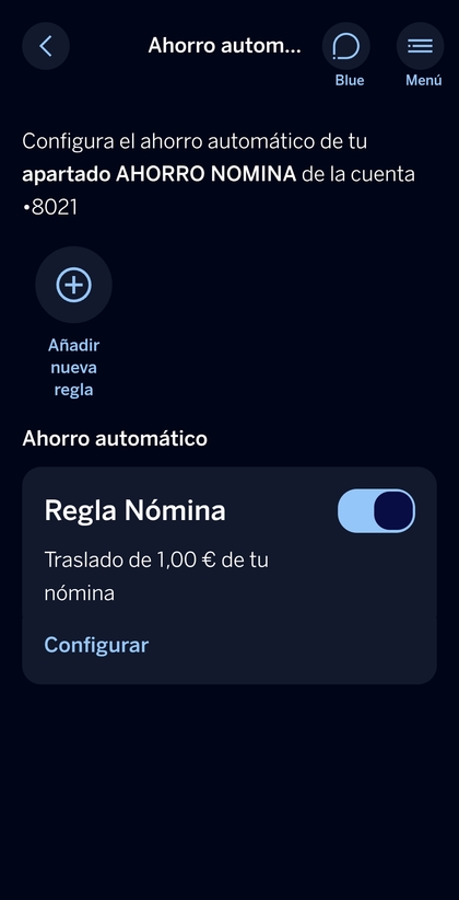 En tu caso con 🍷 es normal. Como mi n0mina real llegará el penúltimo día hábil del mes, ese mismo dia apartaré manualmente los 334€ y la regla n0mina modificada con 1€ que se ejecute cuando le de la gana 😁😁😁