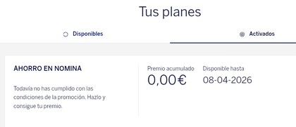 Confirmo que estoy apuntado porque usando el enlace directo sale que no puedo volver a apuntarme y en la promos activas sale la de ahorro en nomina