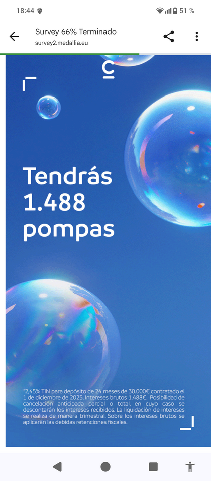 Hace unos días, se comentó que han estado haciendo una encuesta entre clientes, relativa a una supuesta campaña publicitaria. Es previsible que, cuando la lancen, vaya asociada a alguna oferta de cuenta o depósito.