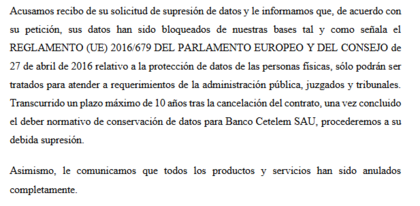 01/04/2026 Solicitud cierre y certificado de cancelación de cuenta 01/04/2026 Recibido certificado de cancelación de cuenta 03/04/2026 Confirmación cierre cuenta y productos 03/04/2026 Solicitud supresión de datos y cierre multicanal 20/04/2026 Recibida confirmación supresión de datos y sin acceso a la app