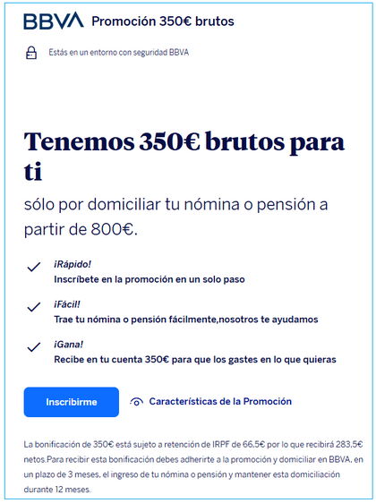 Esa promoción de 350€ no es de colectivos no? Promoción n0mina normal no? Puede ser una opción muy buena ahora, si falla colectivos 400€. Yo tengo los enlaces de la de colectivos 350€, que estan expirado ya. Saludos ☺️