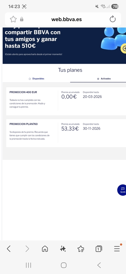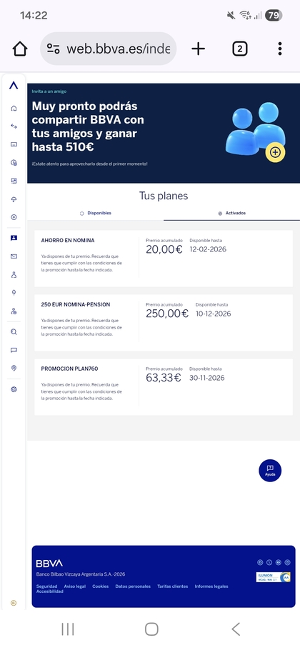 Hoy le he aperturado cuenta a mi hija de 18 años con el plan 760, al final he puesto estudiante por si me pedían datos y el tema del tinto creo no tengo la posibilidad de hacer nada porque parece que esta todo KO en las cuentas que opero, pues solo se beneficiará de 120 bizum+120 recibo+120 tarjeta.