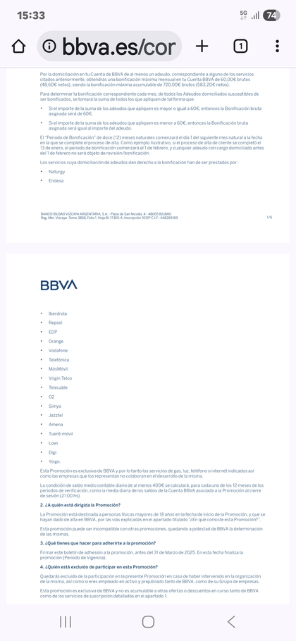 Yo, alguna vez lo he mirado. Lo que pasa es que tienes que tener dos pestañas abiertas del BBVA. Y cuesta un montón encontrar la segunda pestaña. Una vez la tienes. Mete el enlace. Y ves cómo esta promoción. Yo veía al colectivo el setecientos sesenta