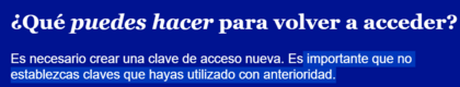 OK, como es domingo... no sé... prueba mañana a ver si te sale alguna de las opciones de la captura anterior. Podrías probar, también, a pedir al SAC, específicamente, que deseas que te envíen por SMS lo que se llama "contraseña de un solo uso" para que al teclearla te permita generar una contraseña nueva, la que quieras pero nunca antes hayas utilizado. Y si en el SAC te dicen que no pueden, sería pedir eso mismo en cualquier oficina, o bien acudiendo presencialmente o bien, si tienes suerte, llamando por teléfono a cualquier oficina a ver si te envían ese SMS con la contraseña de un solo uso.