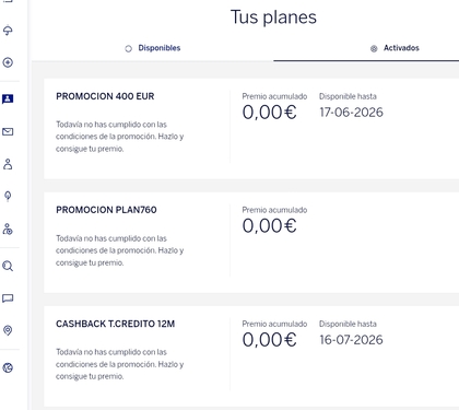 1) Incentivo de 400€ por ingresos de n0mina de importe igual o superior a 800€. 2) Incentivo de 50€ netos por realizar primera compra con tarjeta de débito de importe igual o superior a 50€. 3) 12 meses de permanencia.