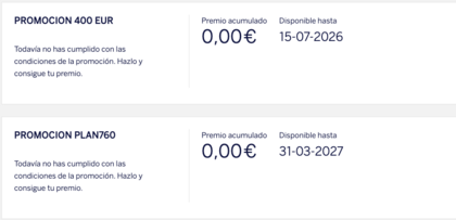 Igual se comentó y no m enteré, pero sabes si eres tan amable si hay actualmente alguna promoción a la q m pueda acoger compatible con éstas dos q tengo en vigor y sacarle algún beneficio más ?