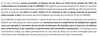 4. Respondería a SRAC + Al defensor del cliente + Defensores de protección de datos de INGratos, adjuntanto la supresión de datos, e informándoles que voy a elevar el caso a la Agencia Española de Protección de Datos (AEPD) porque se están saltando la normativa y ya ha habido multas cuantiosas a otros bancos por el mismo motivo y esto crea jurisprudencia.