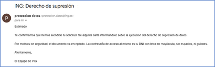 Además si hicisteis supresión de datos .. lo tenéis mas que ganado y vais a sentar un precedente en ING que se tendrá que unir al club Abanca, BBVA, DB, Sabadell etc etc donde se puede repetir ..