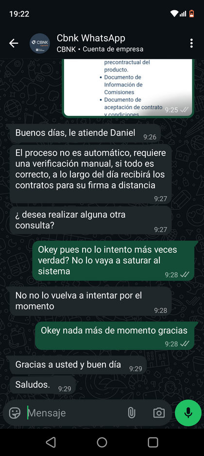 Buenasss Y pasó otro día...y sin recibir la documentación. Les da igual que les haya escrito por email asignandome un número de seguimiento, que les haya escrito por WhatsApp...nada. Ayer lo intenté varias veces (4 más o menos) , hoy una vez solo por la mañana con buena luz. En fin habrá q insistir de alguna manera...
