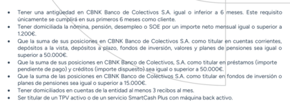 que las nóminas o pensiones de los TITULARES domiciliados en la cuenta sean de un importe mensual superior a 1.600,00€. En el caso de