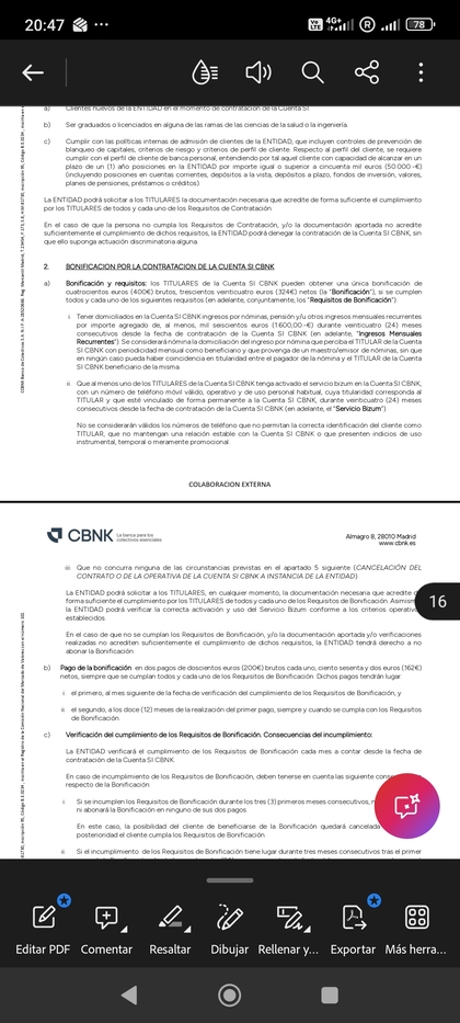 Domiciliación de nómina, pensión o ingresos mensuales iguales o superiores a 1.600€.