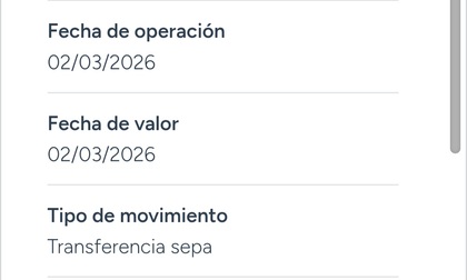 Si accedes a la aplicación a través de la APP. Después pinchas en la cuenta corriente y te aparecen los movimientos. Si picas en la transferencia (tin.to) te sale el detalle del movimiento 👇