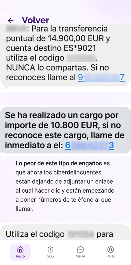 La suerte ha sido también haber recibido el aviso del intento de pago... Un toque de atención oportuno.