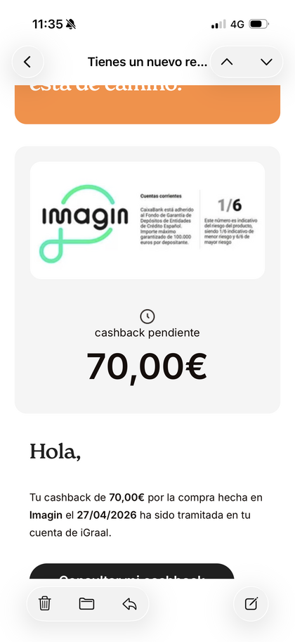 Re: AHORRAR con cashback en iGraal - Cuentas Bancarias y otros